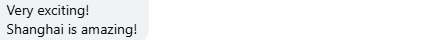 “太棒了,听到这个消息真高兴!上海真是个值得一游的好地方……”