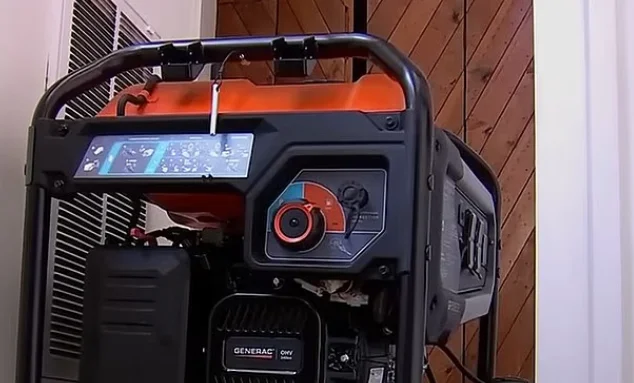 发电机放在室外,通过延长线连接到屋内,为电暖器供电。