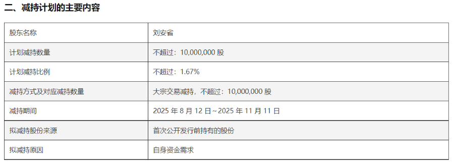相关媒体报道显示,在业绩下滑的情况下,口子窖实控人开启了减持模式。2025年7月20日,口子窖披露了刘安省计划在未来三个月内通过大宗交易方式减持不超过1000万股,占公司总股本的1.67%。刘安省与其一致行动人总共持有42.01%的股份。