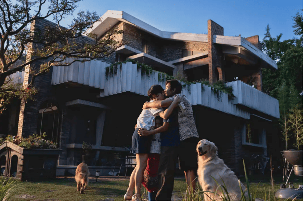 故事的这段开场,导演特意把色彩饱和度拉满,满屏皆是刺眼的绿意,妻子的爱意,子女的顺从,无一不在烘托东亚家庭男性主导之下的教科书式完美。