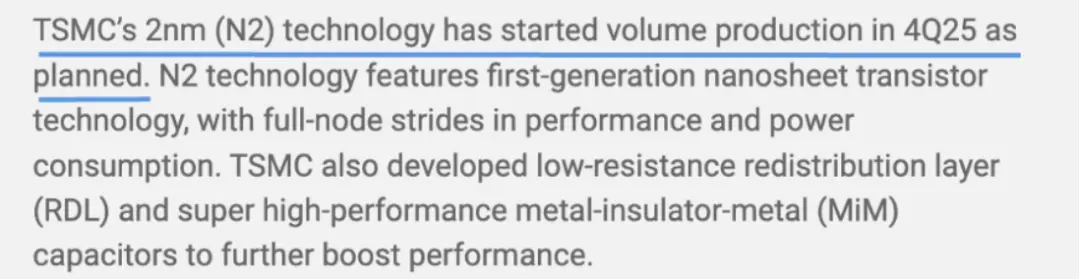 此前台积电已多次表示N2芯片将于2025年第四季度按计划进入量产阶段,此举也意味着该项计划现已兑现。