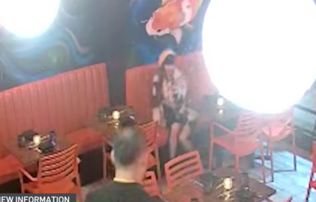 监控拍到,Pei Chung在吃完后不断对着盘子里还剩下的菜肴拍照,看起来是拍照博主无疑。