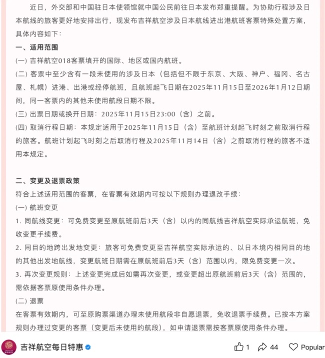 继国航/南航/东航后,中国其他航司也都陆续发布了中国大陆飞日本航线的退改公告,今年底前出发的机票的退款或(首次)改签免费(见文末)。