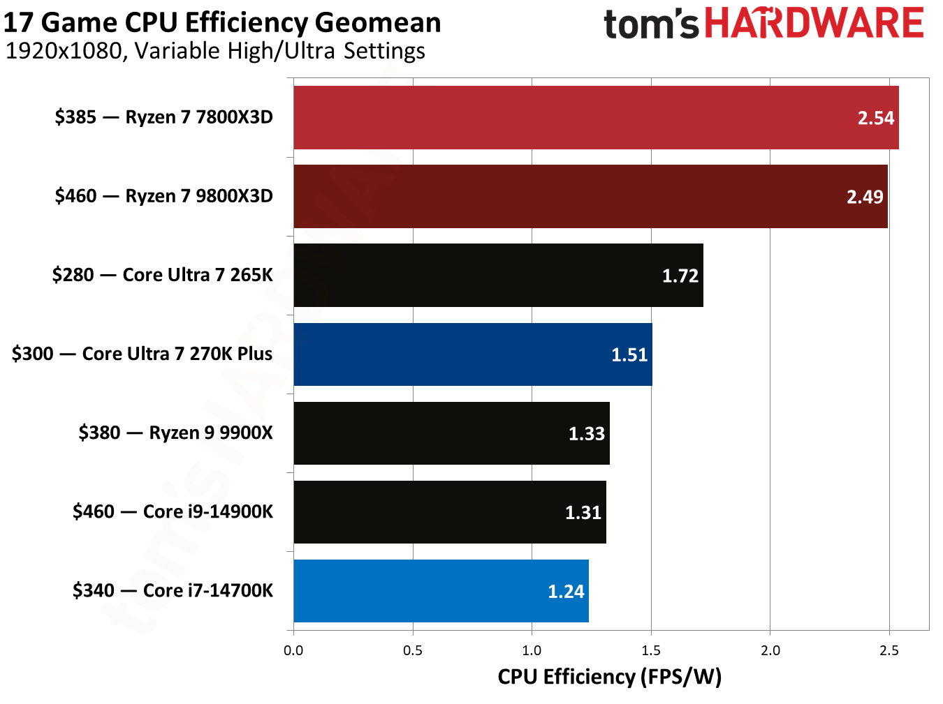 平均能效:7800X3D断崖式领先,幅度几乎70%!