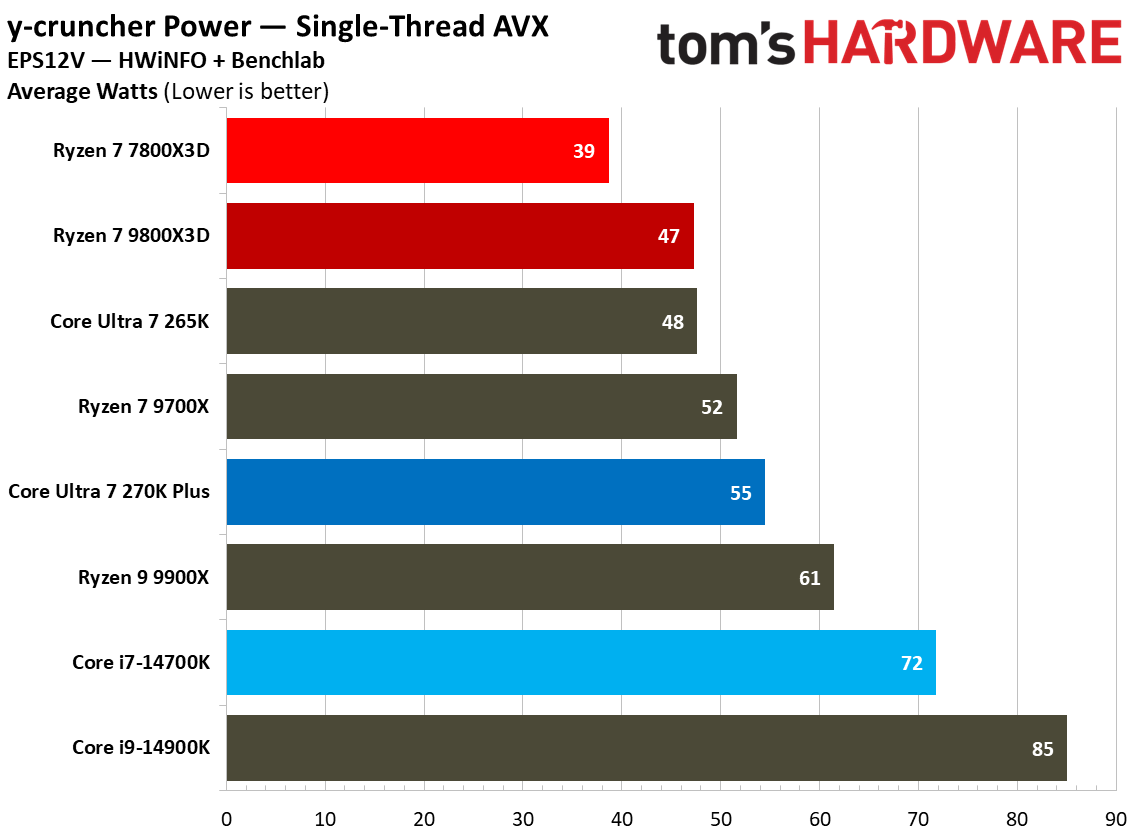 平均功耗:7800X3D 70W出头封神了,270K Plus已经接近110W。