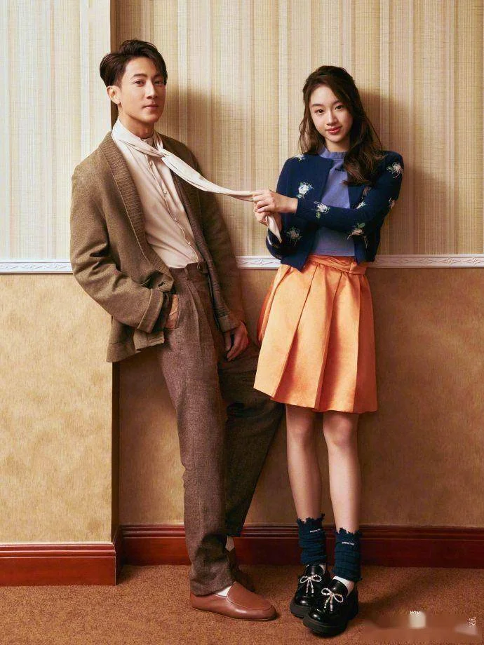 也不知道摄像师当时要他们摆这个pose时是咋想的,难道看着这对俊男美女的组合,一时忘了他们是父女关系了?