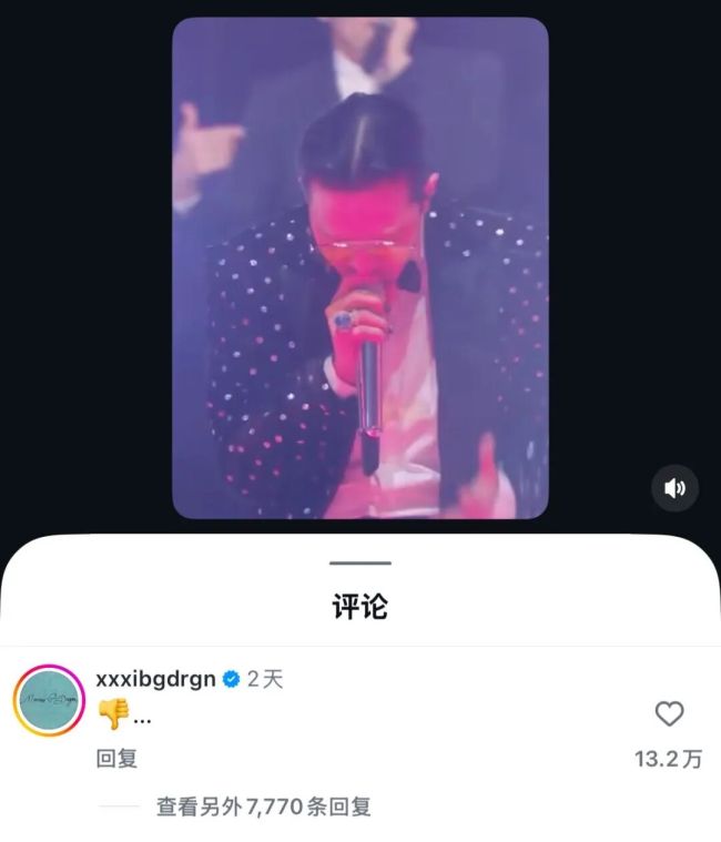 结果没想到冲浪达人权志龙直接光速上号,在演出视频下方评论了一个倒赞「...」表情来回应,显然是对主办方相当不满,直接硬刚起来了。