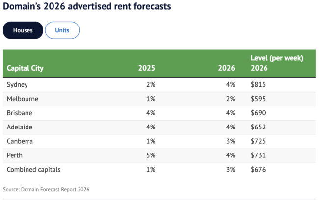 悉尼住宅租金预计上涨4%,达到每周815澳元;公寓租金预计上涨5%,达到每周792澳元。