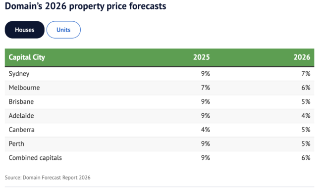 根据Domain公司近日发布的《2026年预测报告》,全国各大首府城市普通住宅的中位价预计将在明年上涨6%,达到创纪录的1,339,267澳元;公寓中位价也预计上涨5%,达到759,112澳元。