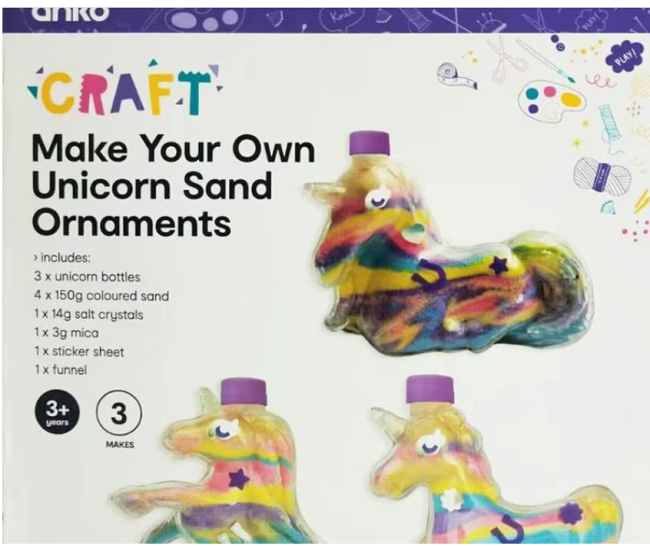 同时,ACCC还警告民众立即停止使用Make Your Own Unicorn Sand Ornaments,因为里面松散的彩沙可能含有石棉。
