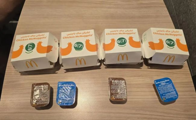 人们在阿联酋麦当劳排队领取免费的鸡块和“67”贴纸。(图片来源:wikimedia commons)