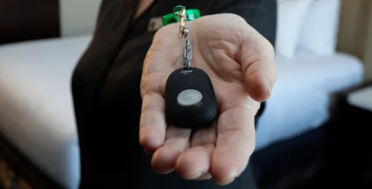 Lin下意识地摸了摸那个黑盒子,苦笑着告诉我,这是恐慌按钮(Panic Button),现在洛杉矶酒店业的强制标配,只要按下这个键,酒店的保安中心,甚至当地警局就会收到最高级别报警。