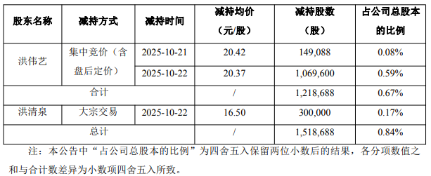 黄梅香持有公司股份2,268,000股(占公司总股本比例为1.2475%),其计划自公告披露之日起15个交易日后的3个月内以集中竞价交易方式或大宗交易方式减持公司股份不超过1,668,000股(占公司总股本比例为0.9175%)。