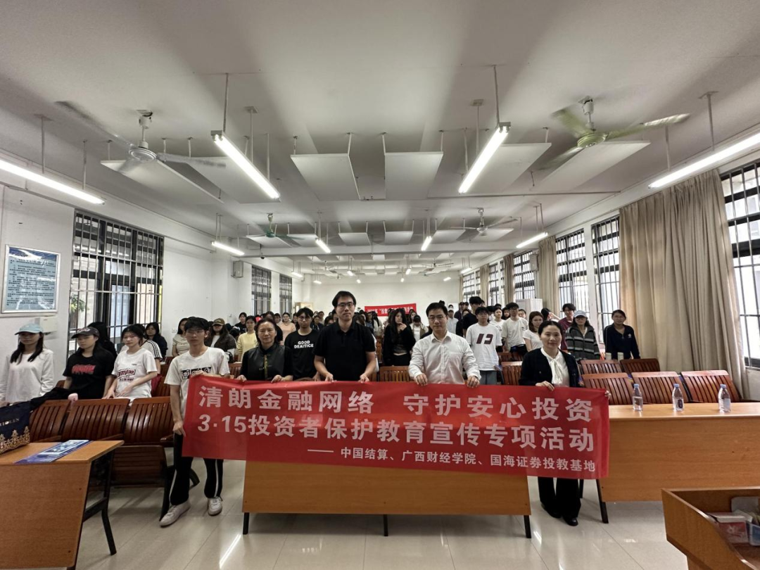 为积极推动投资者教育纳入国民教育体系,3月17日下午,中国结算、国海证券投教基地走进广西财经学院,由中国结算债券业务部陆鹏担任主讲,围绕我国债券市场历史和现状、相关业务知识,为广西财经学院106名学生开展授课,并与现场学生互动交流,帮助学子搭建基础金融知识体系,树立正确投资观念,提升青年群体金融素养与风险防范意识。