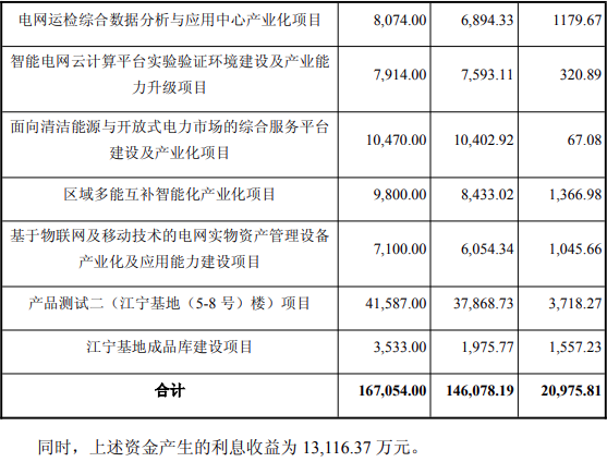 “IGBT 模块产业化项目”计划投资资金为164,388.00万元,由公司与控股子公司南瑞半导体有限责任公司(以下简称“南瑞半导体”,为公司与关联方全球能源互联网研究院有限公司共同组建的公司)共同实施,其中国电南瑞计划使用募集资金 108,523.55万元,南瑞半导体计划使用募集资金55,864.45万元。项目规划投资建设IGBT和SiC器件芯片及模块设计软硬件环境、IGBT和SiC器件生产线等,构建 IGBT、SiC芯片及模块的制造和测试能力,项目实施后主要产品应用于柔性输电领域,目标实现部分柔性输电产品核心部件的自主化生产。