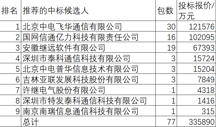国网2025前5通信网设备集成共招77包335890万元,由9家供应商中标提供。