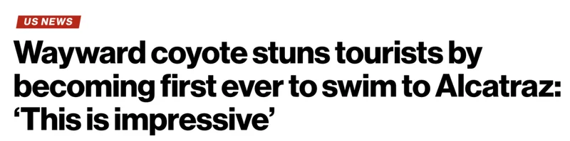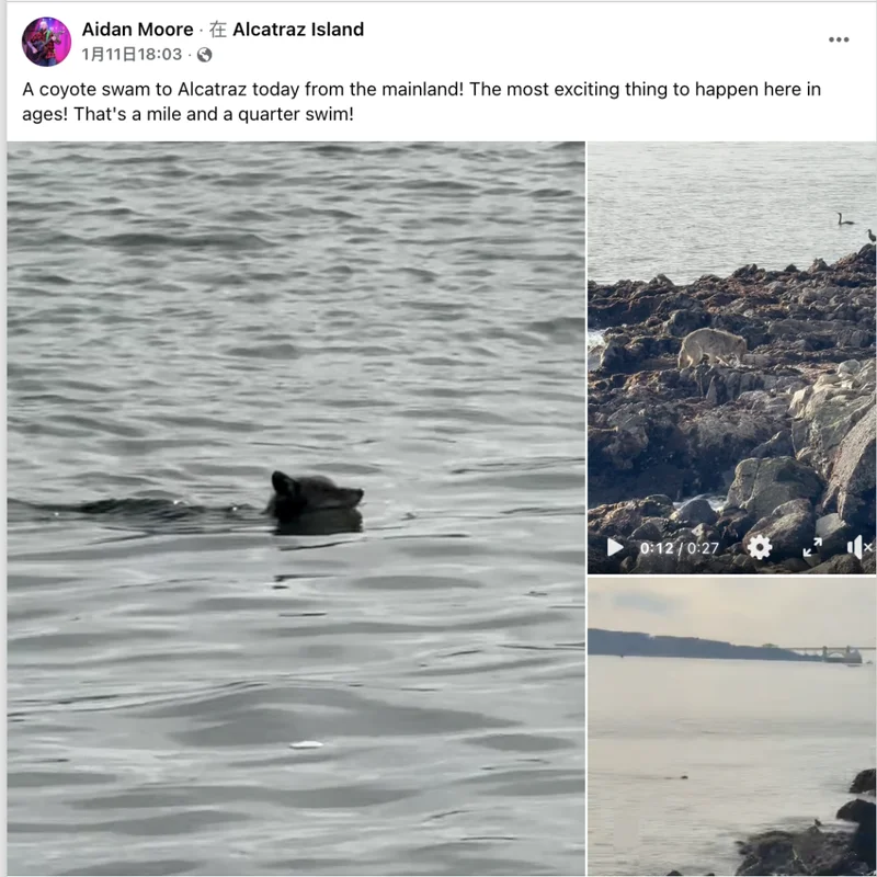 Alcatraz City Cruises 的员工 Aidan Moore 告诉媒体,虽然他们接到了报告,但当公园巡逻队员赶到时,这只土狼已经消失得无影无踪。