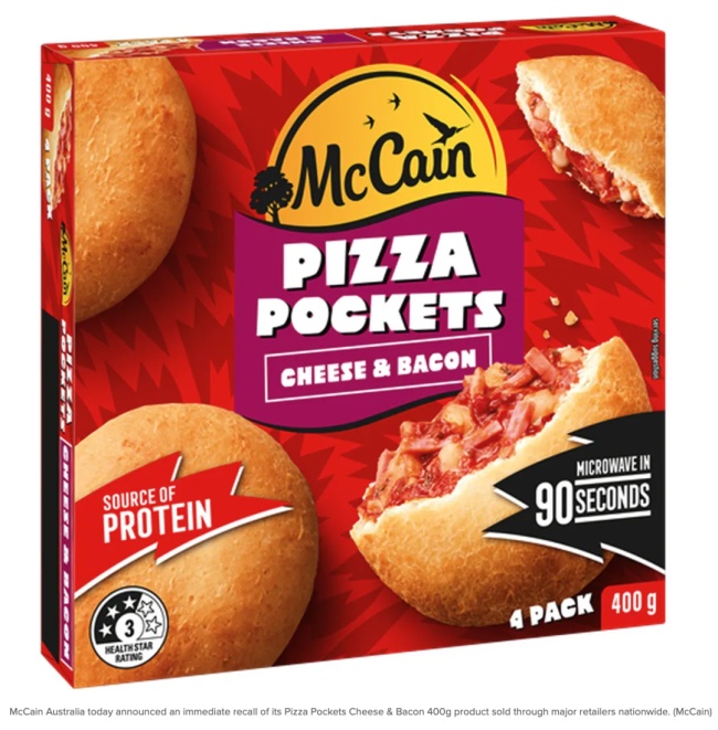 知名冷冻食品品牌McCain宣布紧急下架及召回Pizza Pockets(Cheese & Bacon)400g。