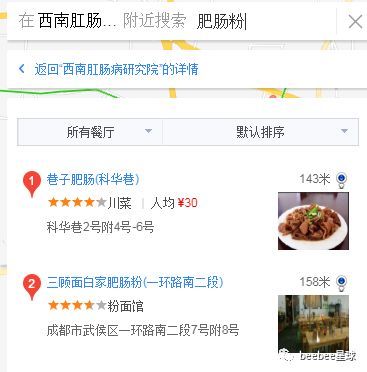 事实上,只要打开百度地图,几乎所有肛肠医院附近都有那么一两家肥肠粉。