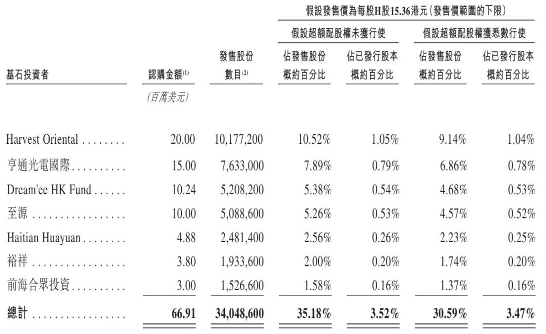 埃斯顿基石投资者分别为Harvest Oriental、亨通光电国际、Dream'ee HK Fund、至源、Haitian Huayuan、裕祥、前海合众投资,一共认购6691万美元。