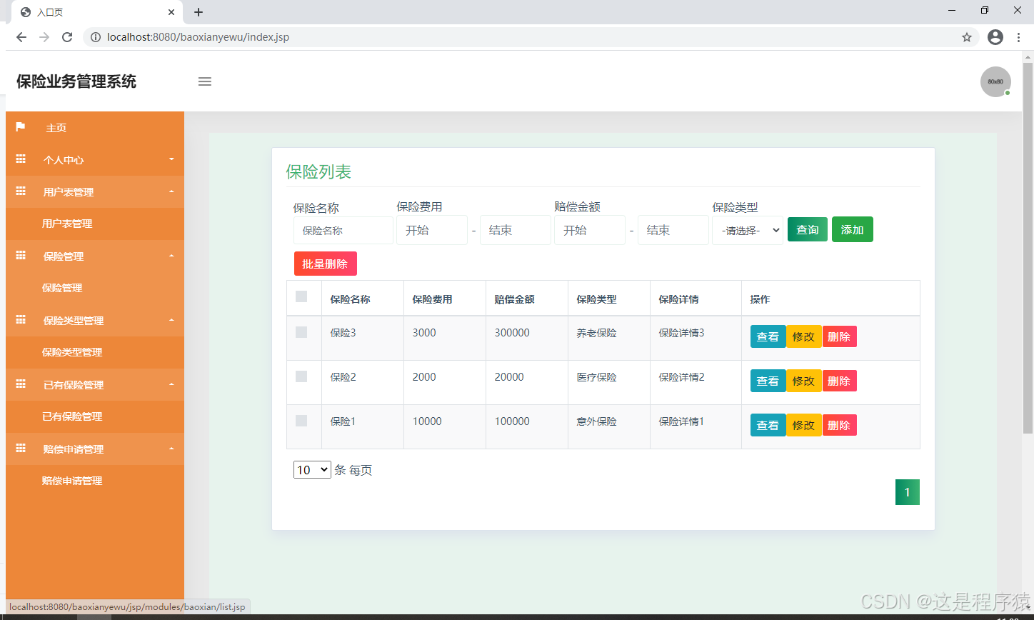 至此,保险业务管理系统可以确保所有功能能够按照预期目标进行运行,可以正式投入生活中运行使用!