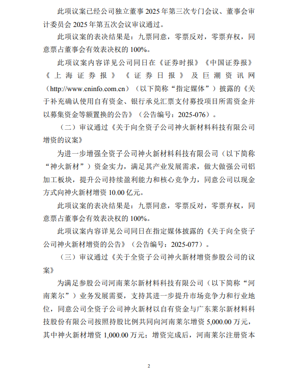 据公告,本次增资的10亿元资金中,4.47亿元将计入神火新材注册资本,剩余5.53亿元计入资本公积。增资完成后,神火新材的注册资本将从9.08亿元增至13.55亿元,股权结构未发生实质变化,仍为神火股份全资子公司。