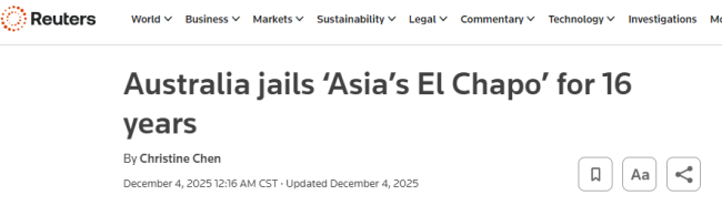随着他被判刑,外界开始关注“三哥集团”的命运。澳洲联邦警察认为,这并不意味着风险消失,因为一个毒枭入狱,并不会让整个产业链彻底坍塌。而在东南亚,制毒网络已形成规模化工业体系,即使头目落网,也可能迅速补位。