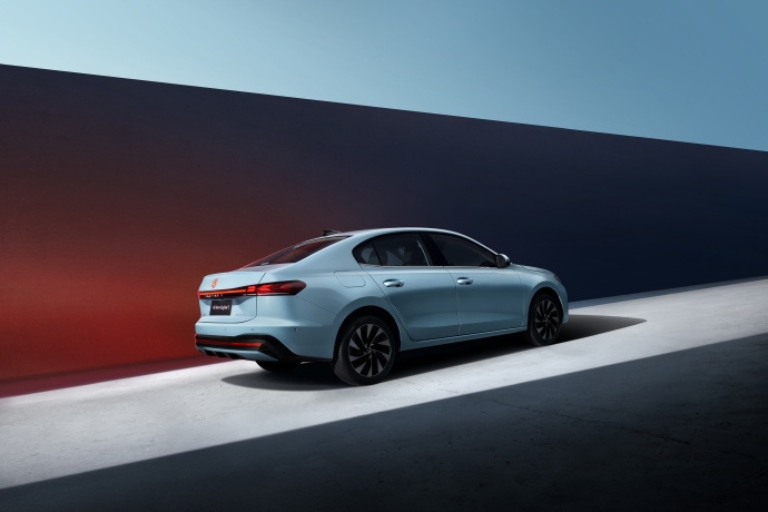 新车侧面型面简洁舒展,溜背式C柱搭配上翘“小鸭尾”,让尾部线条既动感又流畅,车尾的动感交互式尾灯点亮后科技感拉满,后包围底部的装饰件也让尾部更显生动。