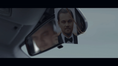 还原过小李子那个著名的敬酒表情包: