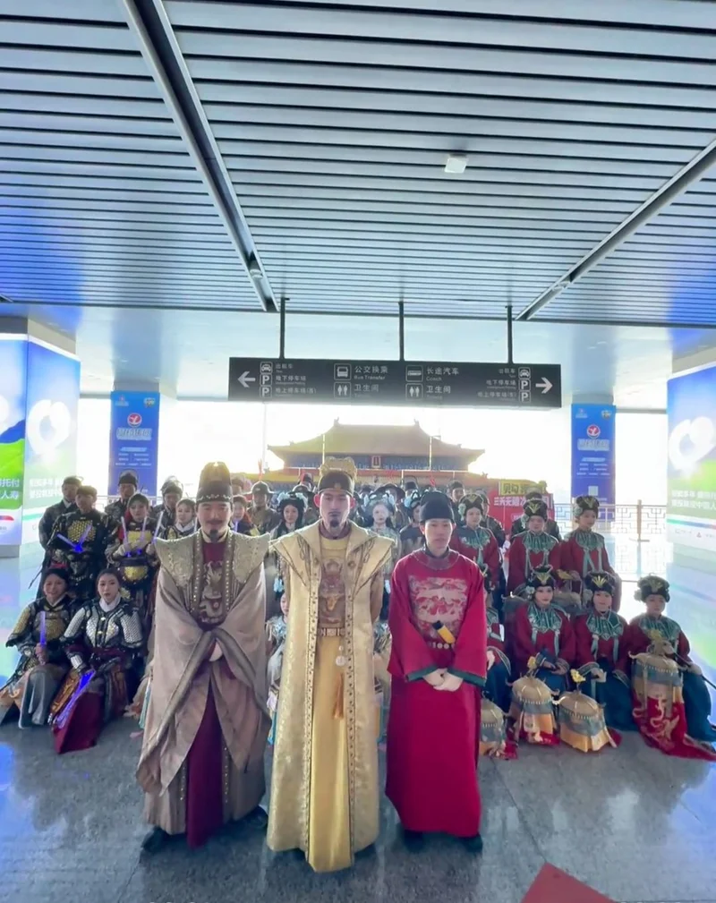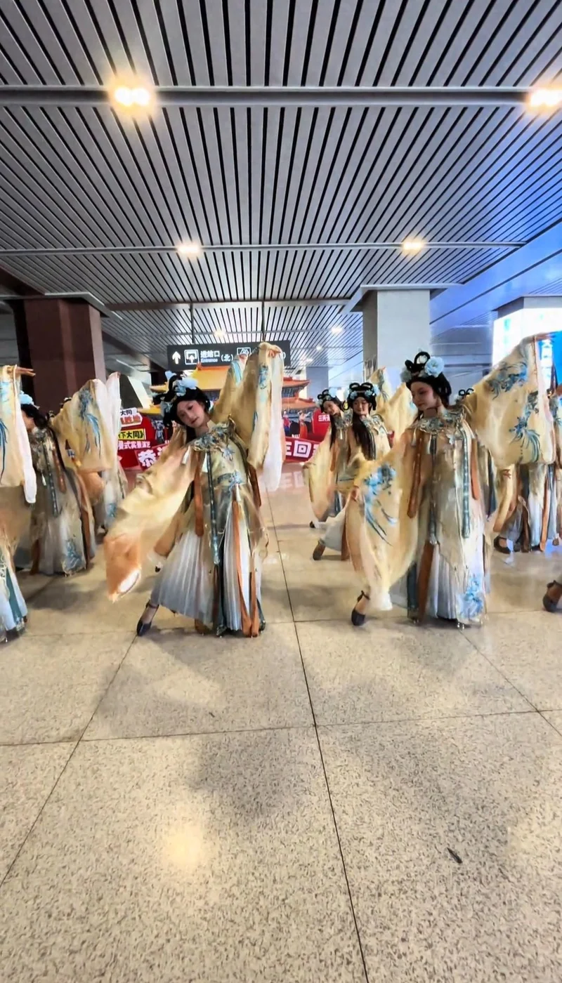 2月2日,据网友发布的视频显示,在山西大同南站,两排身着飞鱼服、腰佩绣春刀的“古代侍卫”在出站口列队迎宾,与游客互动合影。宫女手持宫灯跳起融合现代元素的古典舞,“代王”率众执礼相迎,引得旅客纷纷驻足惊呼:“这是穿越回大明了吗?”。道路尽头,“大同代王府欢迎各位郡王郡主回家”的标语,瞬间将返乡游子从现代交通枢纽拉入历史情境。