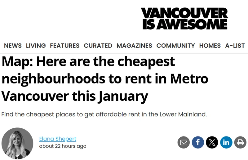 想在大温地区租到“便宜点”的房子,本身就像一场耐力赛,而且有些地方,几乎一开始就可以直接放弃幻想。比如西温——这个长期稳坐“全国最贵租房市场”宝座的城市,今年1月新挂牌的一居室,平均月租已经到了2487加元,连“咬咬牙”都显得不太现实。