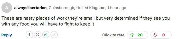 “这些家伙真够讨厌的,它们个头虽小,但异常顽固。只要它们看见你手里有食物,你就得拼命才能保住。”