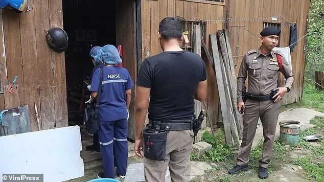警察进入屋内后,发现了Chaiphum的尸体。地板上的血迹已干涸,还能看到几个人类和动物的脚印。