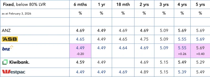 BNZ宣布下调六个月期房贷利率,同时上调四年期和五年期的利率。