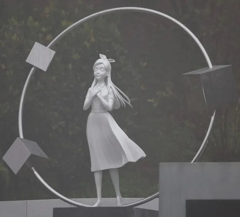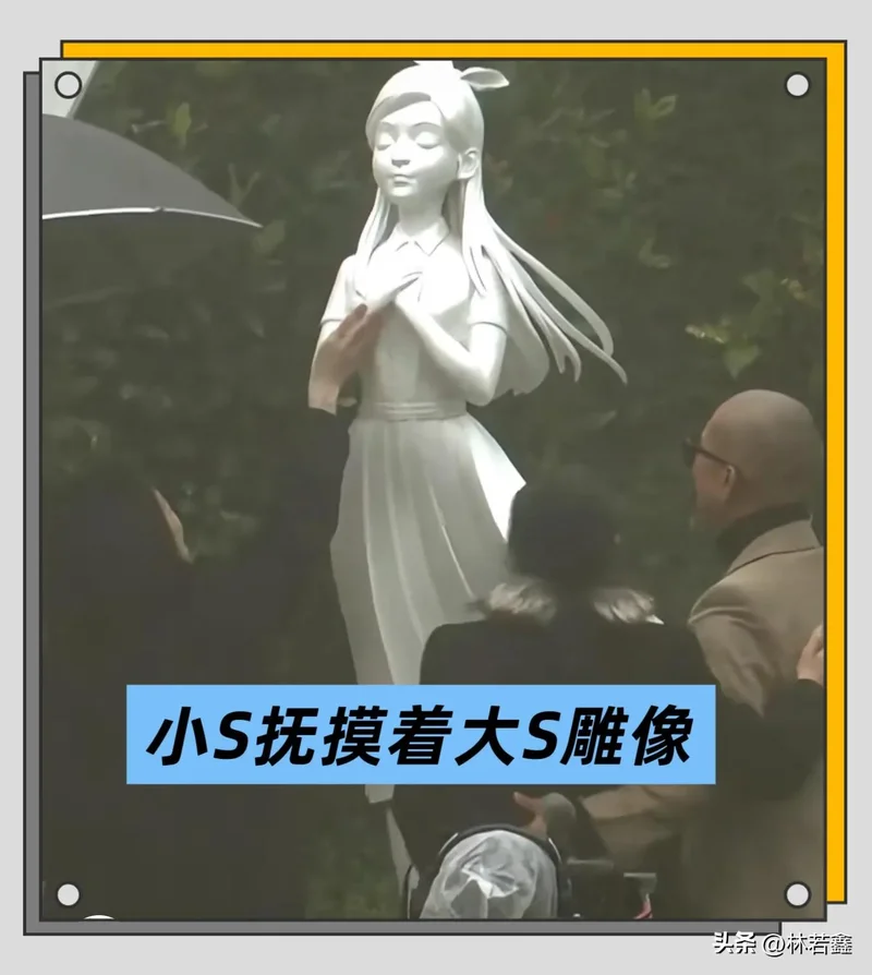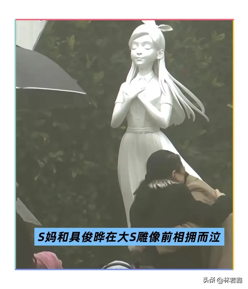 现场下起了大雨,不知道是不是老天也感动了,具俊晔黄春梅小S艰难的揭开罩在大S雕像上的粉色袋子,竟然是一个卡通少女的形象,看上去很可爱,黄春梅在雕像前双手合十,抱着雕像哭了几秒,随后转头感谢女婿具俊晔的设计,两个人相拥而泣,旁边的小S抚摸着雕像,也是哽咽了!众人上前与大S雕像合影,七姐妹姐妹团合唱感动众人!