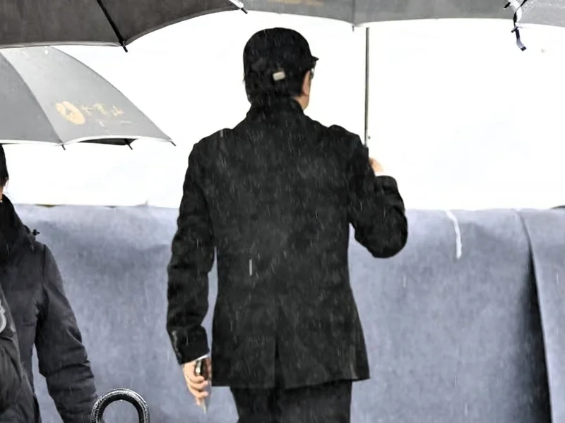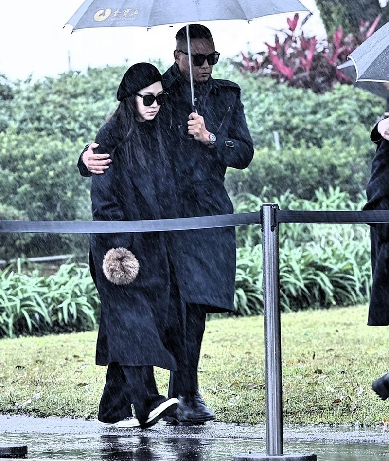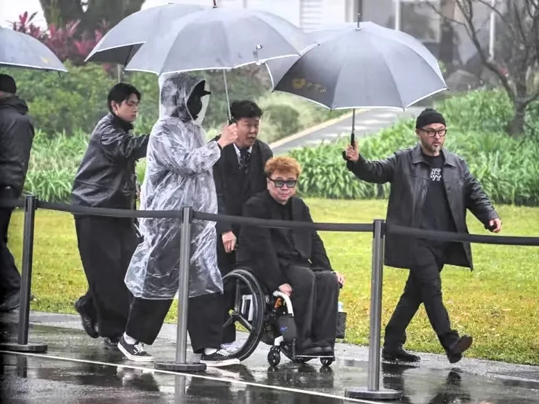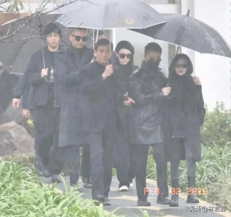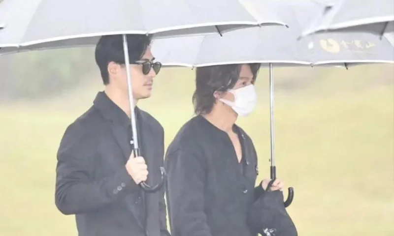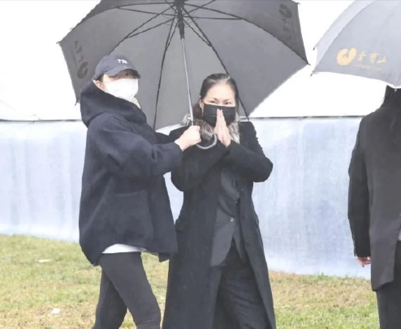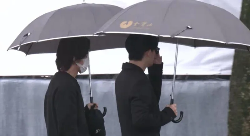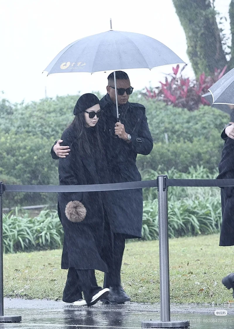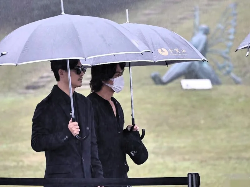 2月2日大S去世一周年,家人为大S举行雕像揭幕仪式,周渝民也被邀请;只见他穿着黑色西服与黑色衬衫,一身黑色穿搭戴着黑色墨镜,单手撑着一把雨伞依然帅气,他并不是一个人去的,而是和言承旭结伴。