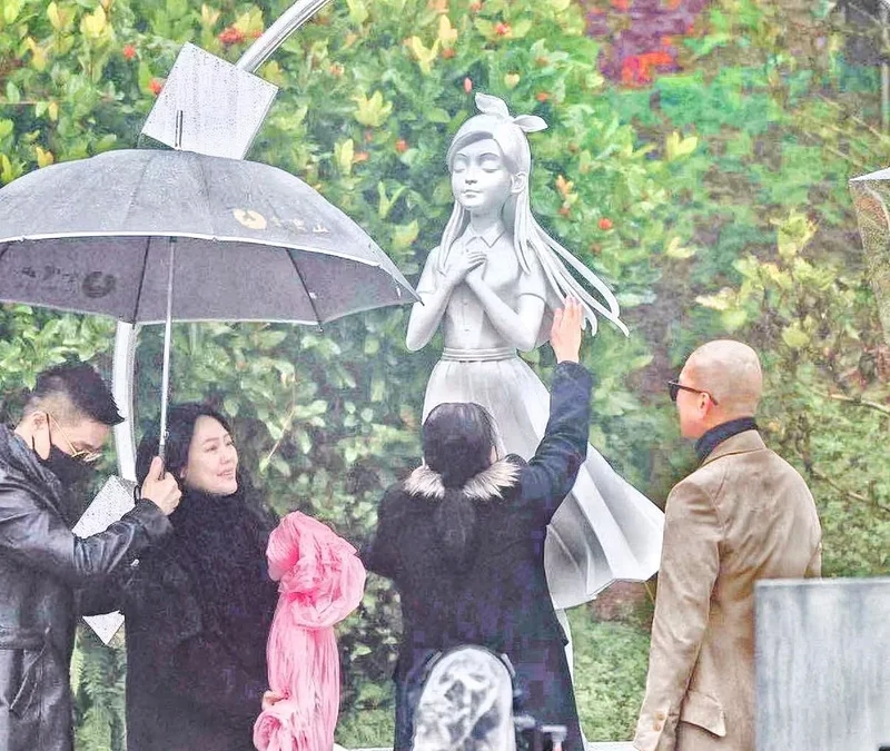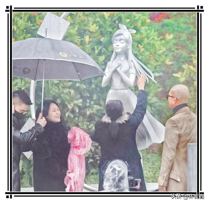 今天台北下起大雨,女明星大S的雕像在风雨中揭开!