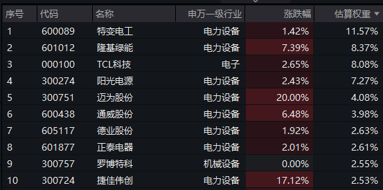 【光伏龙头ETF(516290)标的指数前十大成分股】