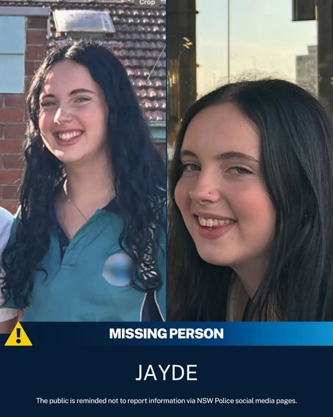 警方表示,Jayde 可能前往以下区域活动:Eastern Beaches,Newcastle,Central Coast,Sylvania. 新州警方、家人和社区对她的安全深感担忧。