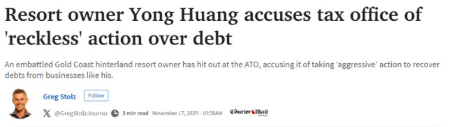 近日,昆州一位华人老板Yong“Peter”Huang怒斥澳洲税务局(ATO)对其公司采取“咄咄逼人且鲁莽”的追债行为,并称自己遭到了“不公正抹黑”。