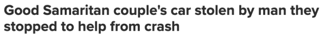 你有没有想过,有一天你伸出援手去救人,结果对方却转头把你的车给偷了?!