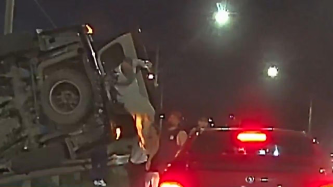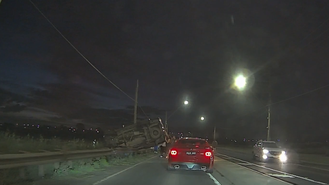 Samantha Petrevski和Daniel Sperandio夫妻俩晚上9点多开车回家,路过Donnybrook Road 时,发现前方一辆车撞上路障后整辆翻滚。