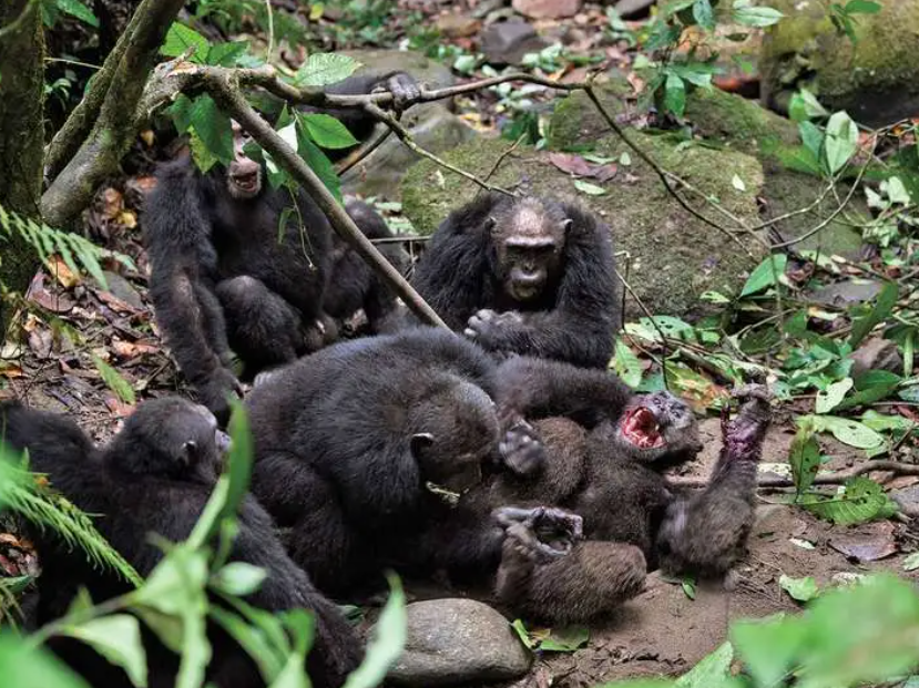 黑猩猩之间经常会爆发一些有预谋的战争,通过观察这些战争,我们可以清楚地知道,黑猩猩是一种狡猾且残暴的动物。