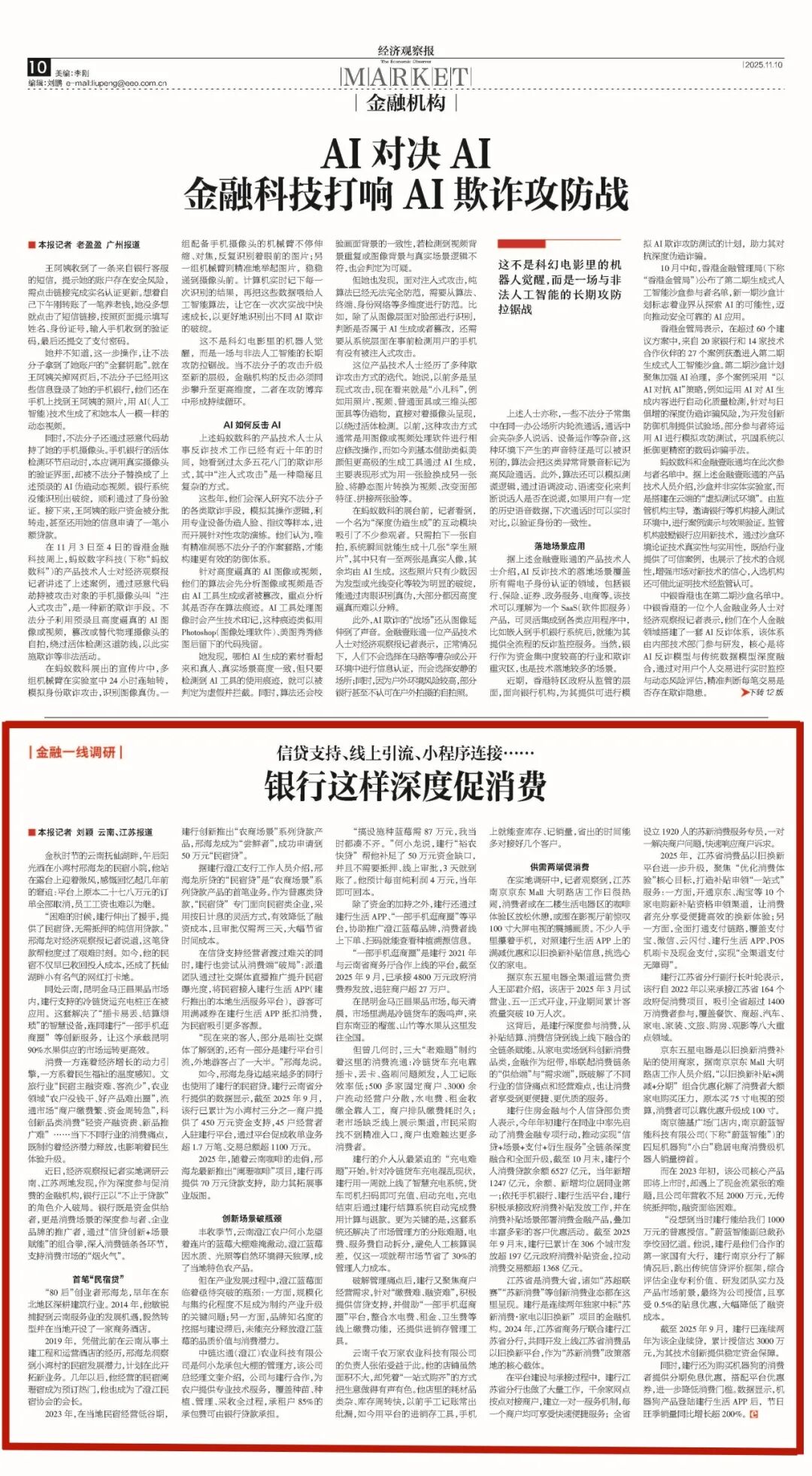 近期,建设银行举办“提振消费促发展”媒体主题调研采访活动,邀请媒体记者走进建行,赴云南、江苏两地,深入田间地头、商圈企业、街道市场,见证金融赋能消费的鲜活场景,直观感受建行在激发消费活力中的实干作为,形成一批深度稿件陆续在媒体平台发布。今日转载《经济日报》、人民网、《财经》杂志、《经济观察报》、华尔街见闻记者调研采访专题稿件如下: