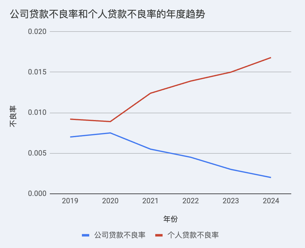 从不良率看,该行对公贷款不良率持续走低,与个贷不良率走势形成了鲜明的“剪刀差”态势。