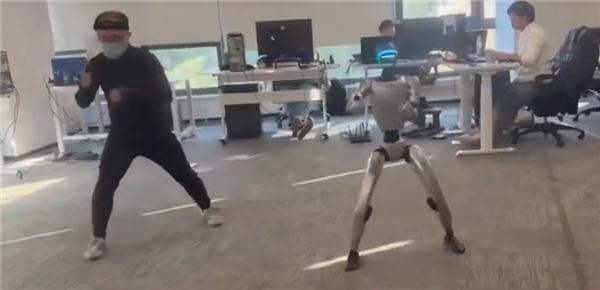 然而在随后的模仿过程中,由于动作出现偏差,机器人不慎一脚踢中工程师,意外场面令人忍俊不禁。