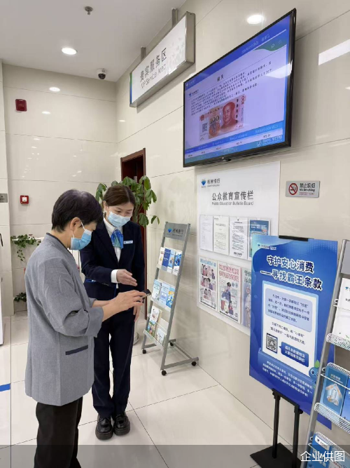 北京东城支行、北京通州支行的公众教育区设有金融知识宣传折页展架、易拉宝、电子屏幕等,支行工作人员利用公众教育区多种宣传物料,深度开展客户金融消费者八项基本权益宣传。