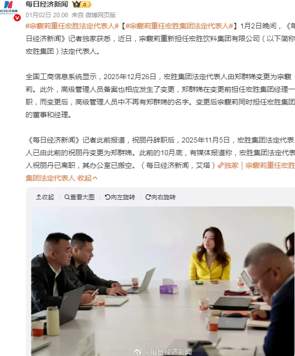 2025年12月26日,她刚回到宏胜担任法定代表人,11天内就完成了大刀阔斧的调整:把沪苏和浙北合并成浙沪市场,黔东黔西并成贵州,南疆并入新疆,7名省级负责人走马上任,3名高管直接被免职,这波操作快、准、狠,完全没有了在娃哈哈时的束手束脚。
