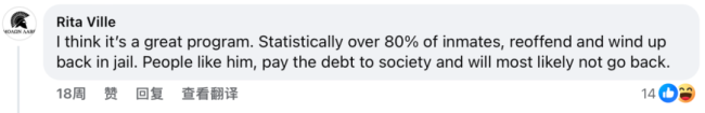 “我觉得这个项目很棒。统计数据显示,超过80%的囚犯会再次犯罪,最终重回监狱。像他这样的人,偿还了对社会的亏欠,很可能不会再犯。”