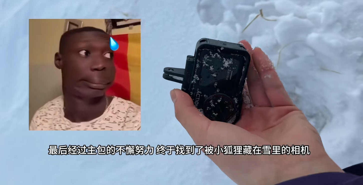 小狐狸叼走运动相机 第一视角记录挖坑埋赃全程 Source 最近,一位旅行博主在雪地旅行时,遭遇了一场令人忍俊不禁的意外——运动相机被一只野生小狐狸叼走。相机第一视角模式完整记录下小狐狸作案的全过程,视频上传后迅速走红网络。 博主最终在小狐狸埋藏的地方找回了相机。幸运的是,设备仅外壳沾了些泥土,拍摄的视频完整保存。